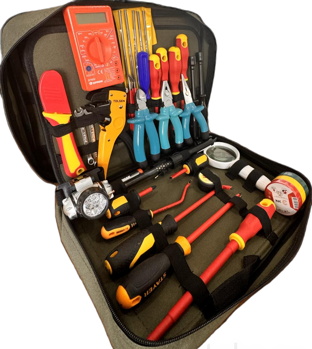 В состав набор релейщика РЗА-У входит стандартный базовый набор РЗА, доукомплектованный необходимым инструментом для электромонтажных, паяльных и других ремонтных работ. Весь инструмент выполнен из закаленной высокоуглеродистой прочной стали, имеет удобные эргономичные изолированные рукоятки, позволяющие Вам плотно и удобно держать инструмент в ладони при любых работах.