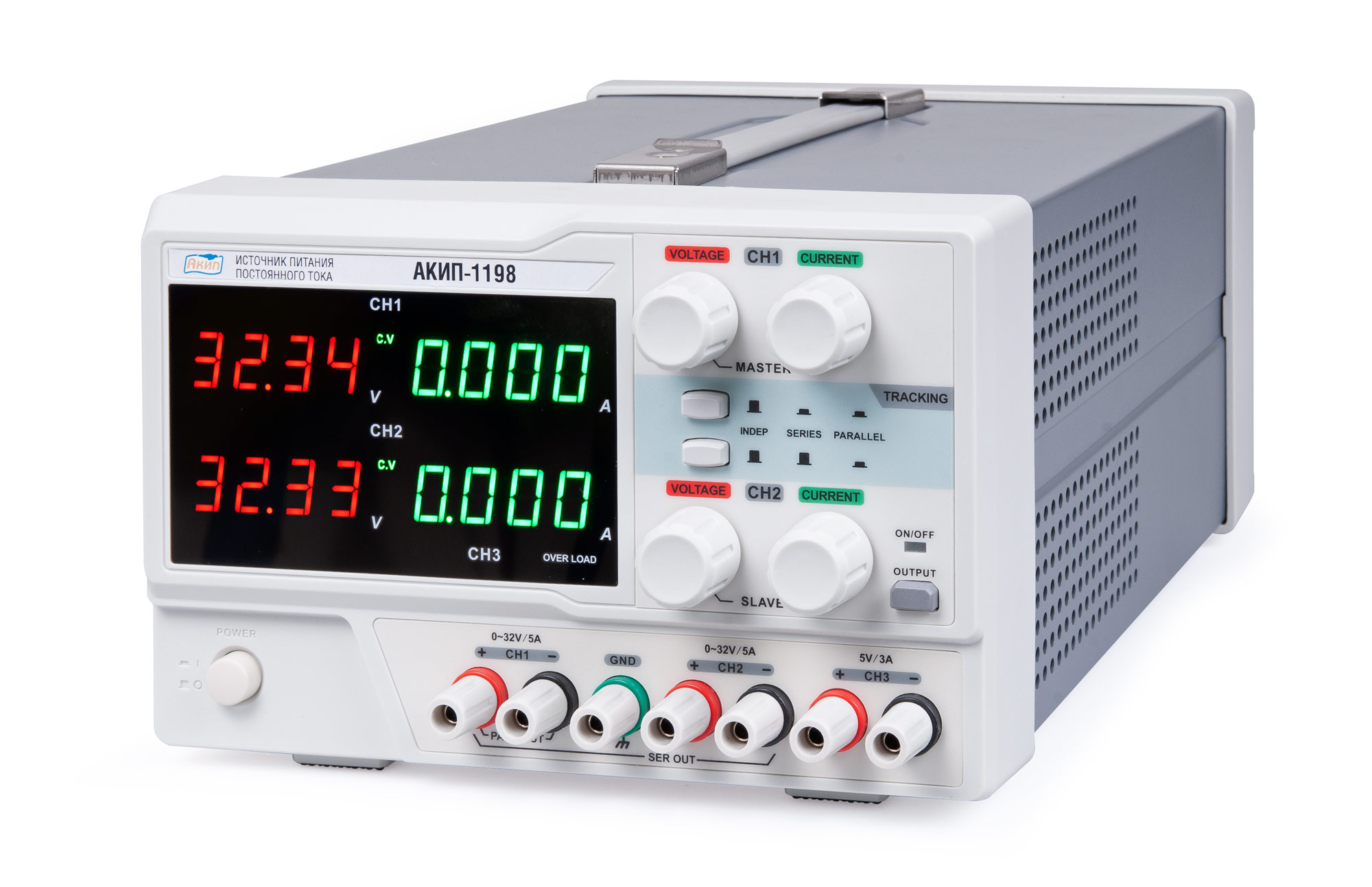 | Особенности | Дискретность установки 10 мВ/ 1 мА. LED индикатора, 4 разряда. Режим параллельного/ последовательного объединения, автотрекинг каналов (Кан1/ Кан2). Режимы стабилизации тока и напряжения (CC/CV). Защита от перенапряжения, перегрузки по току и перегрева (OVP/ OCP/ OTP). Низкий уровень шумов и пульсаций ( |