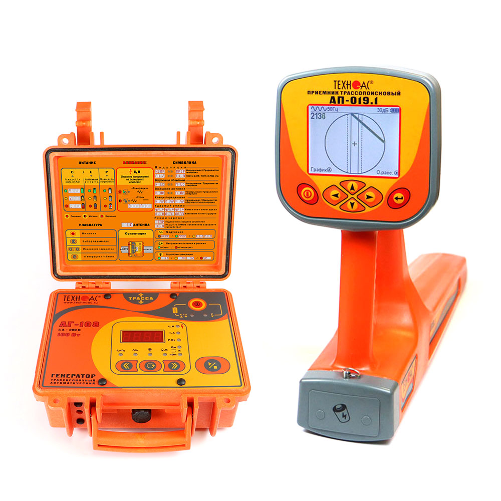 Комплект оснащен новейшим компактным автономным генератором АГ-108 со встроенными элементами питания, дисплеем и встроенной индукционной антенной, для трассировки коммуникации бесконтактным способом.