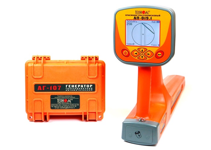 Трассопоисковый комплект Успех АГ-309.30Н создан для точного определения местоположения и глубины залегания подземных коммуникаций (силовые и сигнальные кабельные линии, армированные оптоволоконные линии, трубопроводы из электропроводных материалов), поиска неисправностей кабельных линий, а также позволяет в кратчайший срок и с большой надежностью проводить обследование местности перед производством земляных работ и предотвращать повреждение инженерных коммуникаций. В составе комплекта приемник в виде моноблока с большим ЖК дисплеем, на который выводится изображение трассы и в автоматическом режиме происходит расчет глубины залегания коммуникации до 10 м, а также величины тока в линии. Комплект оснащен новейшим компактным автономным генератором АГ-107 со встроенными элементами питания, дисплеем и встроенной индукционной антенной, для трассировки коммуникации бесконтактным способом. Выходная мощность генератора до 60 Вт.