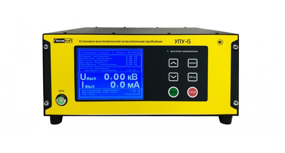 Установка высоковольтная испытательная пробойная ПрофКиП УПУ-15 - предназначена для генерирования напряжения постоянного и переменного тока синусоидальной формы частотой 50 Гц, а также для измерения напряжения и силы переменного и постоянного токов при проведении испытаний и диагностировании изоляции силовых кабелей, изоляции электрооборудования, ограничителей перенапряжений, твердых диэлектриков, средств защиты и т.д.
