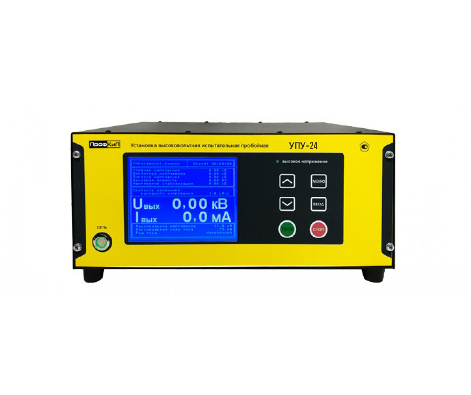 Установка высоковольтная испытательная пробойная ПрофКиП УПУ-24 - предназначена для генерирования напряжения постоянного и переменного тока синусоидальной формы частотой 50 Гц, а также для измерения напряжения и силы переменного и постоянного токов при проведении испытаний и диагностировании изоляции силовых кабелей, изоляции электрооборудования, ограничителей перенапряжений, твердых диэлектриков, средств защиты и т.д.