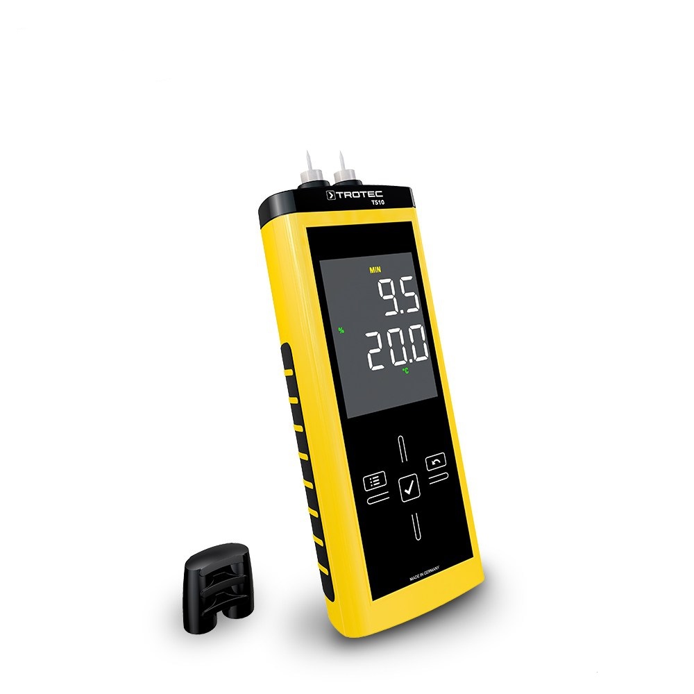 В дополнение к измерению влажности в мягких строительных материалах T510 самым наилучшим образом подходит для инспекций на лесных предприятиях, лесопильных заводах и деревообрабатывающих предприятиях. T510 снабжен меню, позволяющим выбирать сотни различных типов древесины. Данные по различным материалам хранятся в программном обеспечении устройства и могут быть выбраны из таблицы типов древесины Trotec с помощью соответствующего номера материала. Справочник по типу древесины, содержащий 170 страниц, включенный в объем поставки, является самым обширным списком кривых на рынке. T510 оснащен специальной функцией температурной компенсации измеряемых материалов. Во время измерения значение влажности и температура древесины одновременно отображаются на четком цветном дисплее за специальным стеклом Blanview, обеспечивающим высококонтрастное отображение измеренных значений даже на солнце.